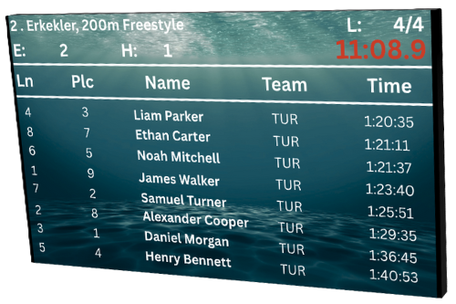 Automated Workflow: Seamlessly syncs with timing consoles to publish athlete names and lane results the moment they finish.