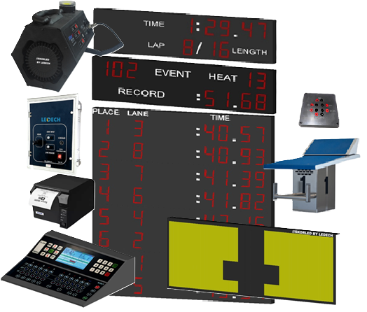 Technical Core: Powered by LEDECH, our scoreboards integrate seamlessly with Splash Meet Manager for automated results and page cycling.