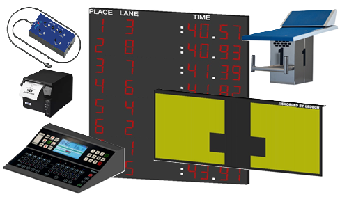 Digital Command: The LEDSTORY Timer Console (SKL-SWC-V2) acts as the brain of the race, orchestrating data from across the deck.