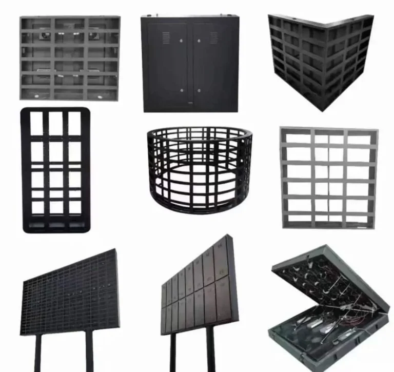 LED კაბინეტები: სტრუქტურული ჩარჩო, რომელიც იცავს შიდა კომპონენტებს. ის უზრუნველყოფს თერმულ მართვას და ზუსტ სწორებას, რაც აუცილებელია ერთიანი, ღრიჭოების გარეშე გამოსახულების მისაღებად.