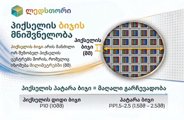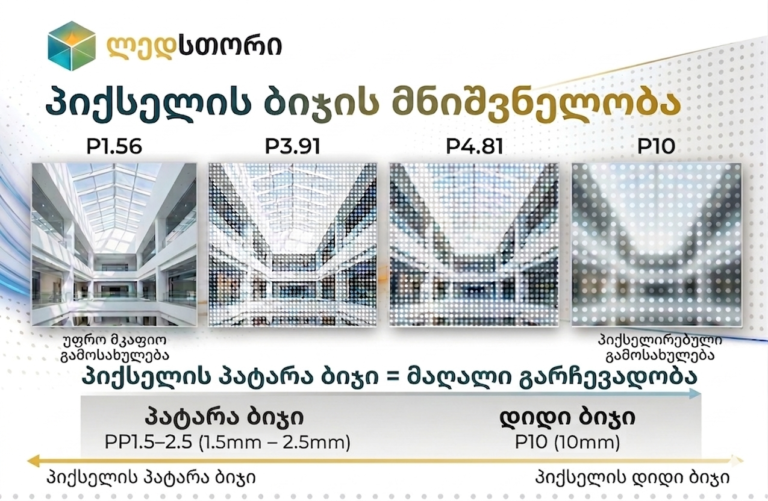 პიქსელის ბიჯი(PP) არის ეკრანის ერთ-ერთი ძირითადი მახასიათებელი და განსაზღვრავს გამოსახულების რეზოლუციის ხარისხს, რაც უფრო მჭიდროა მანძილი დიოდებს შორის მით უფრო მაღალი რეზოლუციის გამოსახულებას იძლევა ეკრანი